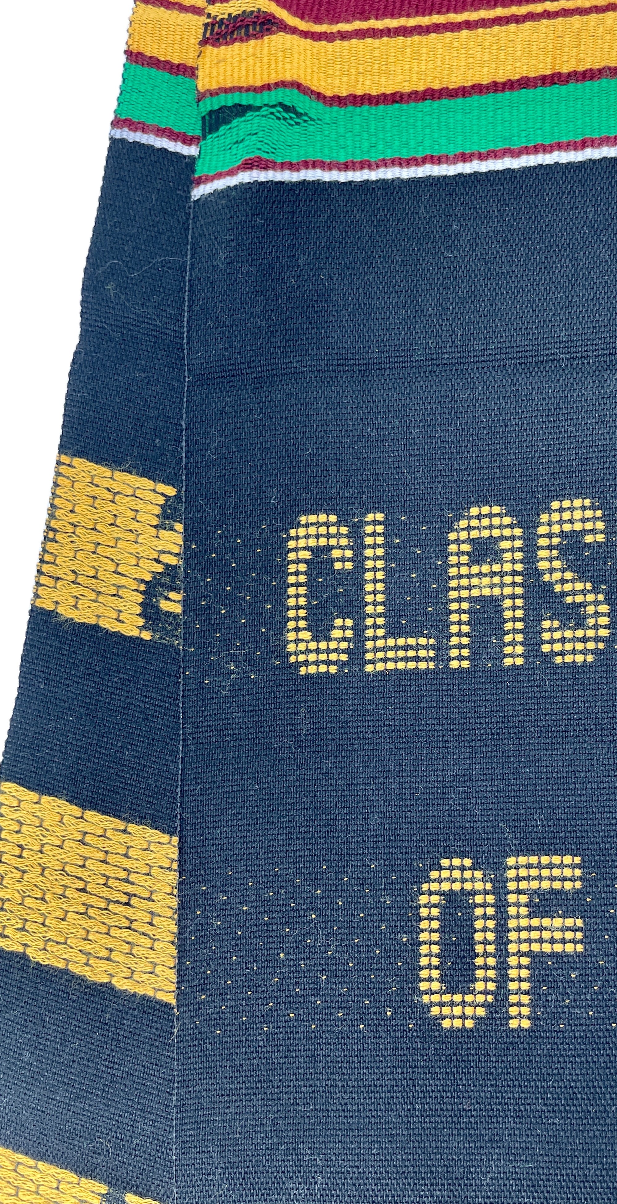 What sets our stoles apart is the hand-embroidered craftsmanship. Even the letters are meticulously hand-woven into the threads as the fabric is created, adding a personal touch to the design.