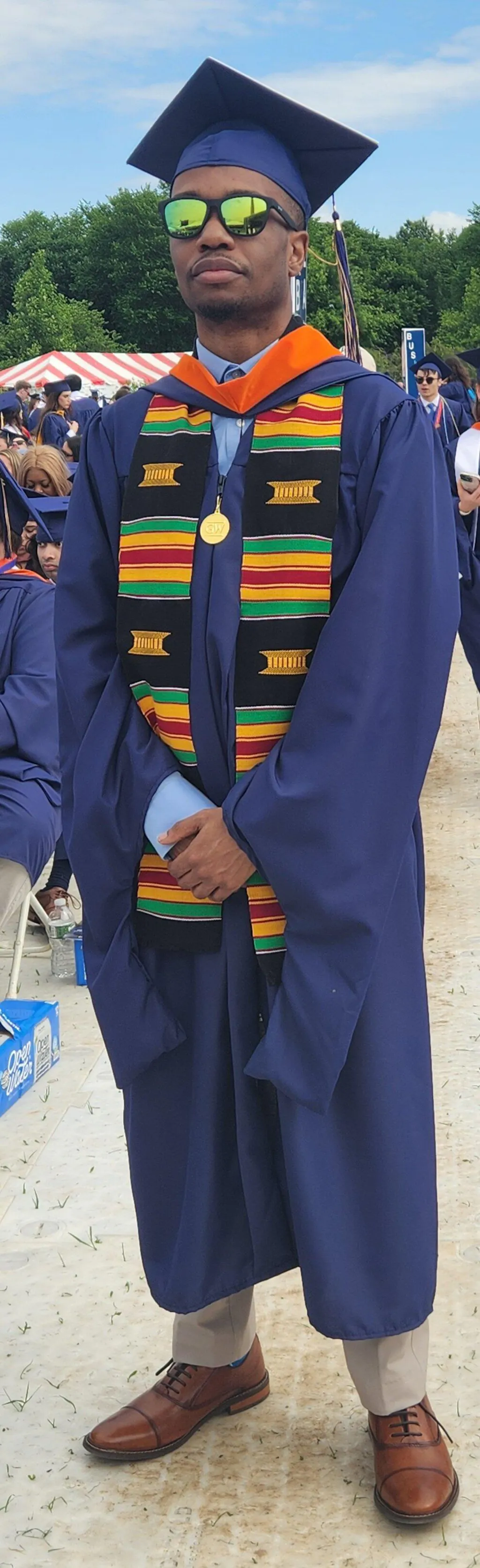 Celebrate your hard-earned success and share your remarkable journey with this vibrant, eye-catching Kente Cloth Graduation Stole. As you cross the stage on your special day, the stunning colors and intricate patterns of the Kente Cloth will ensure you stand out and leave a lasting impression on all who witness your achievement.