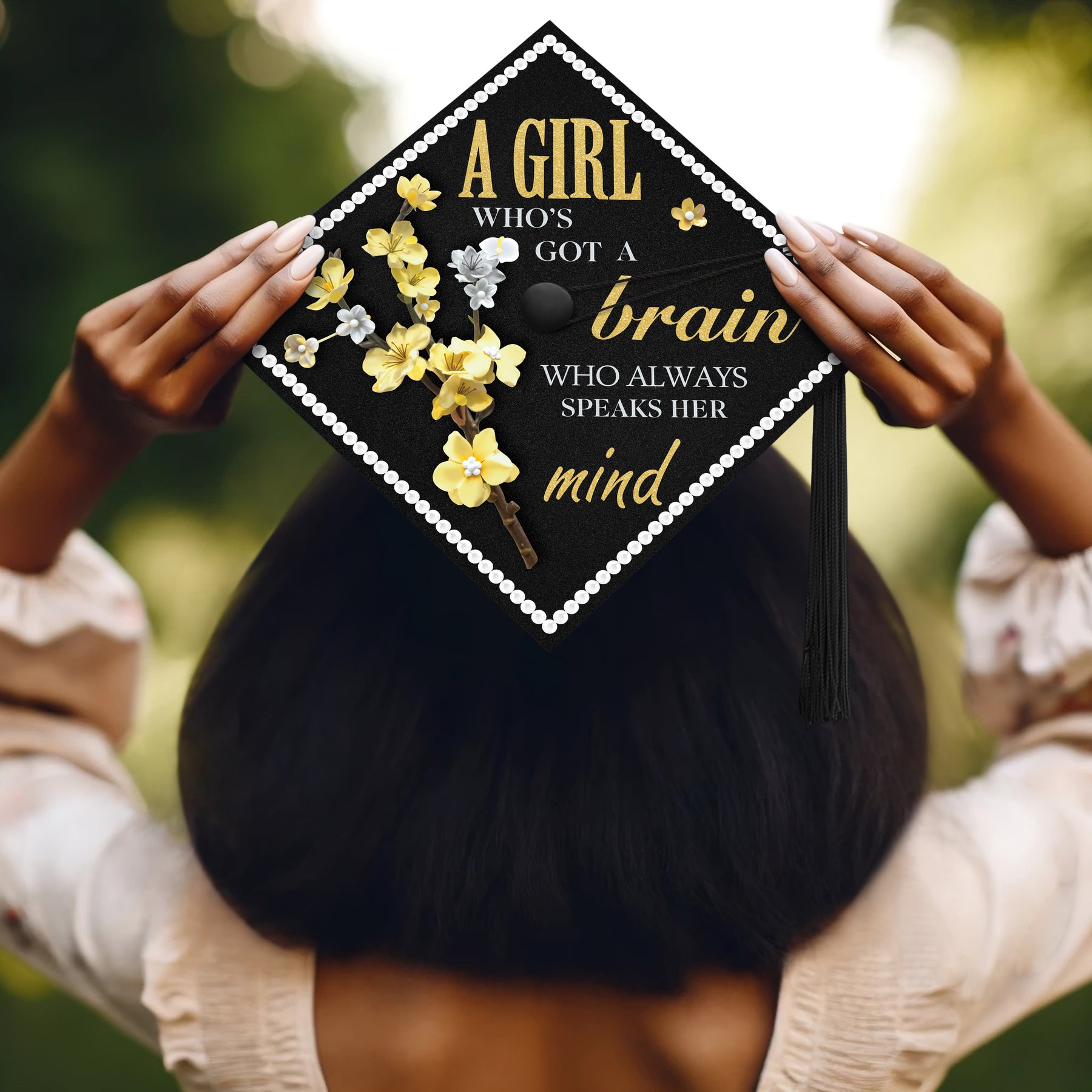 A Girl Who’s Got a Brain Who Always Speaks Her Mind Graduation Cap Topper