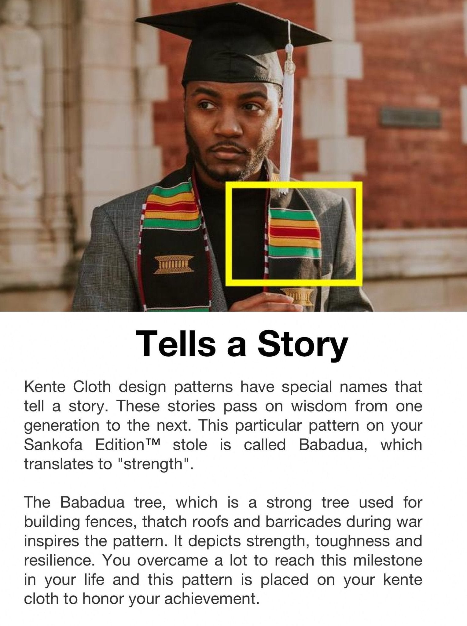 • REAL HAND-WOVEN KENTE CLOTH – This Sankofa Edition Kente Stole is hand-woven in Ghana, West Africa by skilled artisans with strict attention to detail – even the embroidery is carefully hand-stitched; Our Kente Cloth is made in the tradition of the Kente Cloths worn by Kings and Queens in Ghana and is the perfect graduation gift and keepsake.